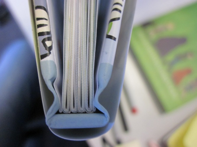 (This is Odd Duck. You can see that this book has four signatures — they’re the pages grouped together at the spine of the book. Those are sewn into the book’s spine.)